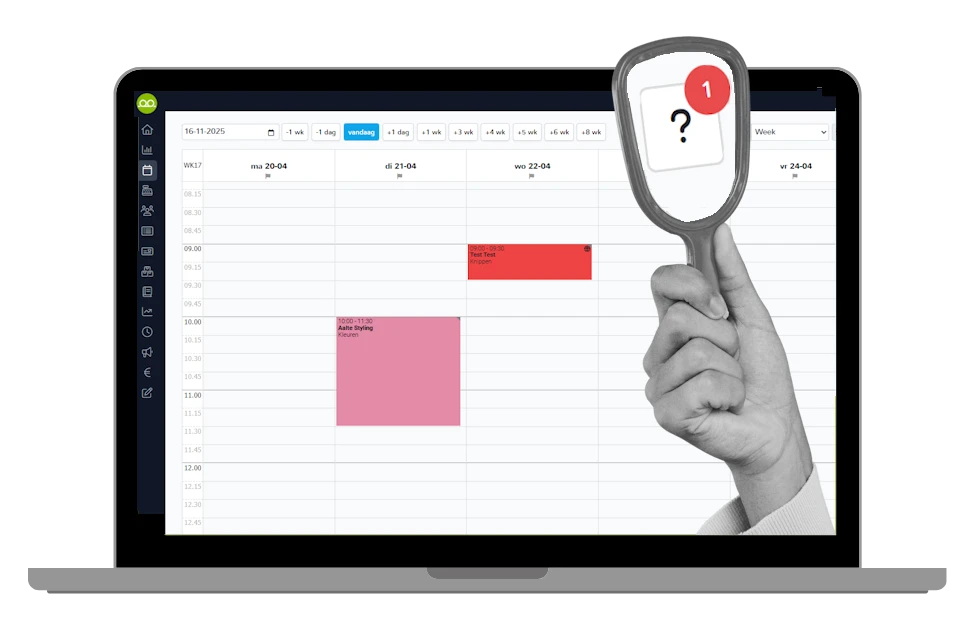We bieden een alles-in-één software oplossing, inclusief de optie voor een geïntegreerd boekhoudsysteem. Het regelt afspraken, klantbeheer, voorraden, boekhouding en meer, allemaal in één systeem! Super handig voor salons om alles makkelijk te managen!