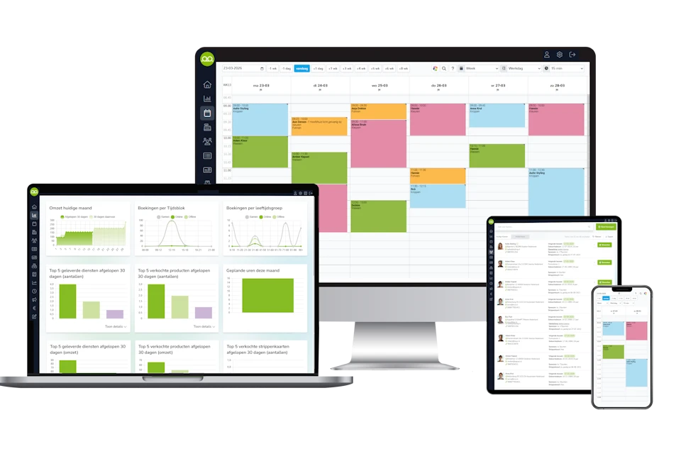 We bieden een alles-in-één software oplossing, inclusief de optie voor een geïntegreerd boekhoudsysteem. Het regelt afspraken, klantbeheer, voorraden, boekhouding en meer, allemaal in één systeem! Super handig voor salons om alles makkelijk te managen!